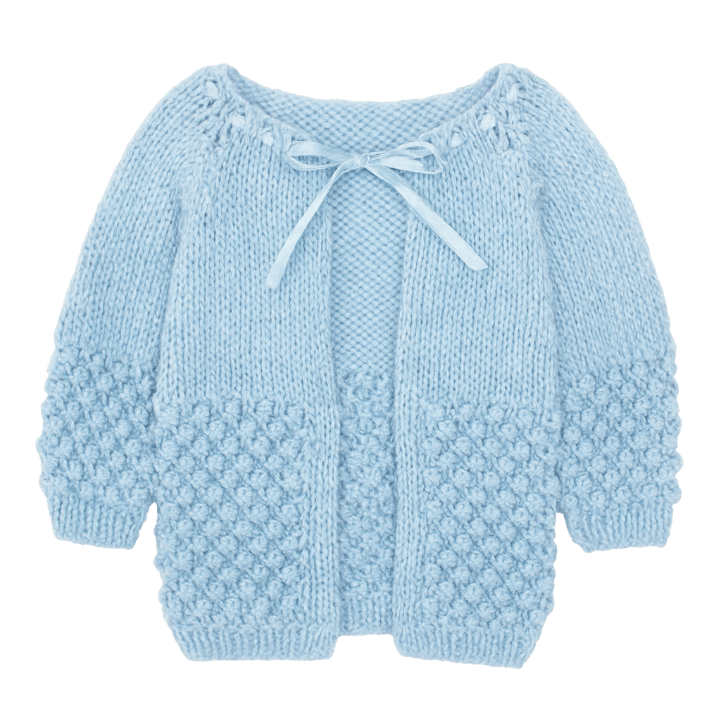 Our hand-crocheted Baby Blue Sweater is soft, stylish, and made to be cherished. For an unforgettable present, choose the Deluxe Set—featuring the sweater, matching booties, and a cozy blanket. Thoughtful, handmade, and ready to wrap your little one in love.